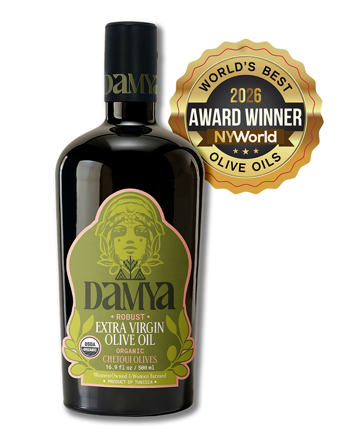 Damya Robust EVOO is made from hundred-year-old trees organically cultivated using ancestral techniques.